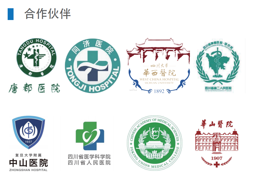 公司利用多年从业经验,依托独有的稀缺性医疗资源,为进一步实现“资源共享、共同发展”的目的,与中国前100强多家医院结成深度战略伙伴关系,目前已达成合作的包括:北京协和医院、四川大学华西医院、上海同济医院、复旦大学附属中山医院、复旦大学附属华山医院、西安唐都医院、四川省肿瘤医院、四川省人民医院等多家医院。并且是川内唯一一家与中国人民解放军总医院(301医院)有合作关系的公司。