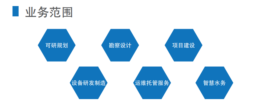 水务建设版块主要服务自来水厂和污水处理厂等,包括规划、设计、工程、设备、智慧水务 、运营。业务模式有:全产业链一站式综合服务、区域连片治理、全场站设备模块化装配式15天建场,针对客户需求提供个性化、多元化水处理解决方案。