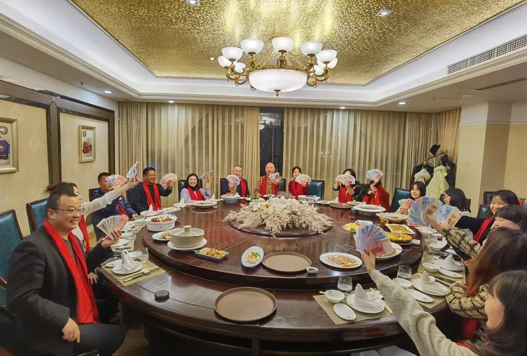 随后,公司领导班子和员工欢聚一堂,共襄盛举,共赴晚宴。